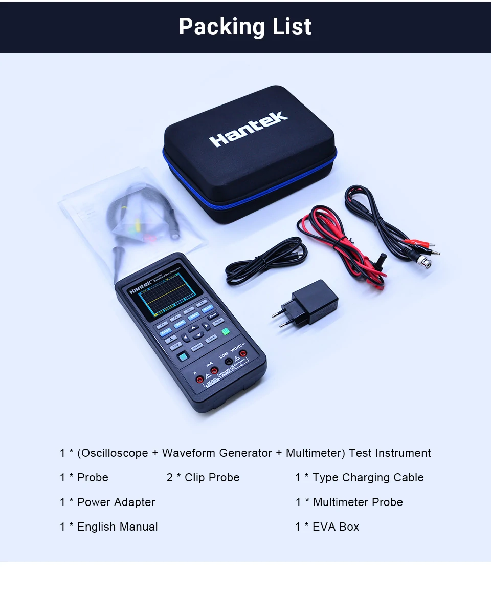 ♦ Oscilloscope + Waveform Generator + Multimeter: This multi-purpose station own three universal test instrument functions. It is outgoing right-hand product for engineers.