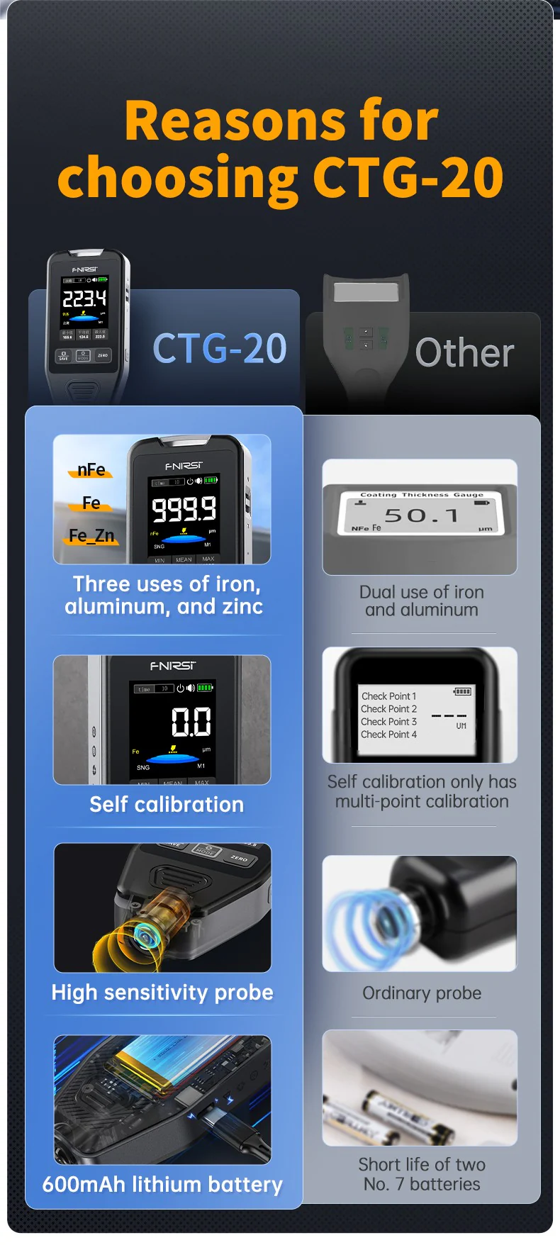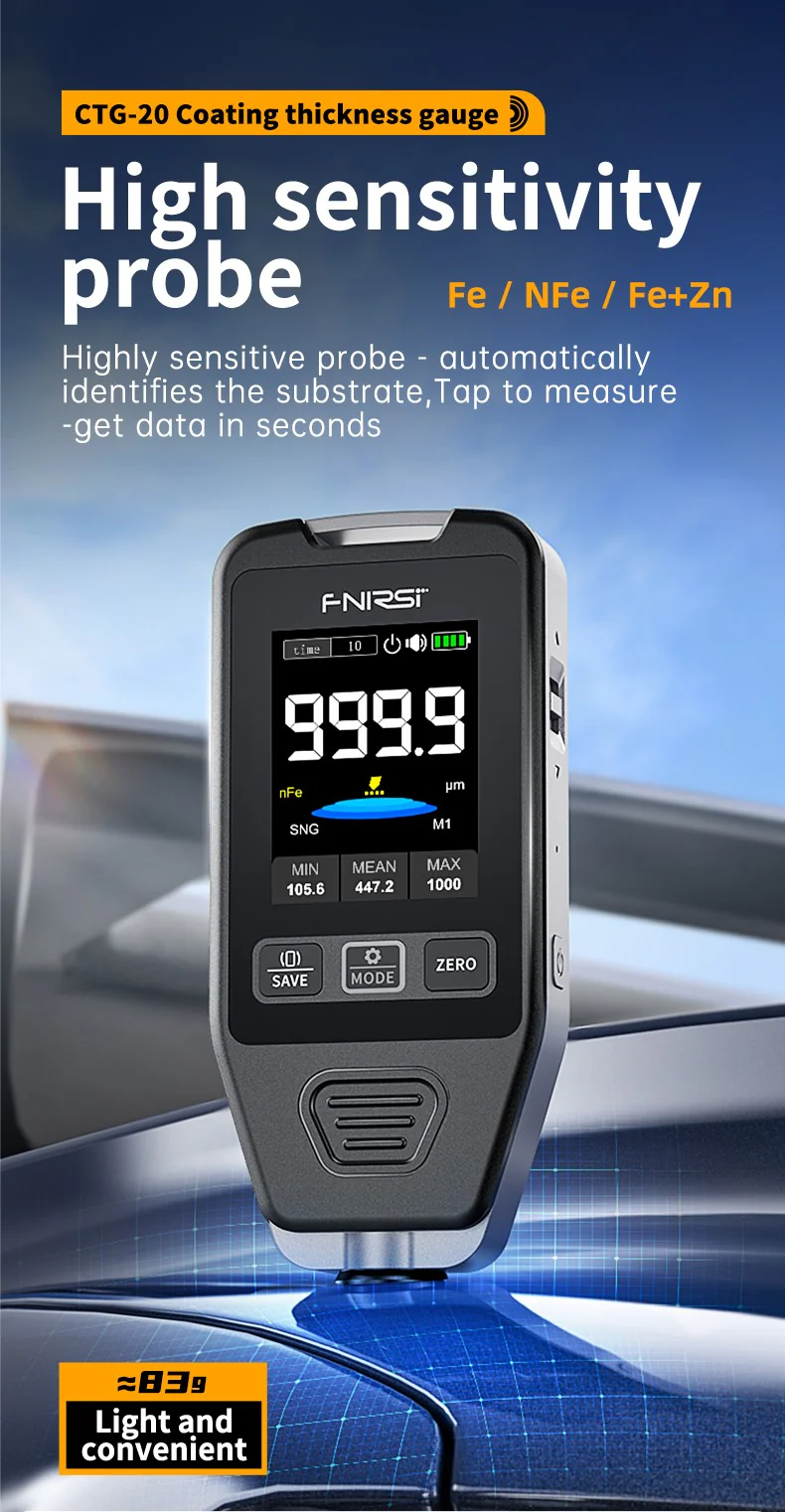FNIRSI® CTG-20 Jauge d'Épaisseur de Revêtement de Peinture Automobile