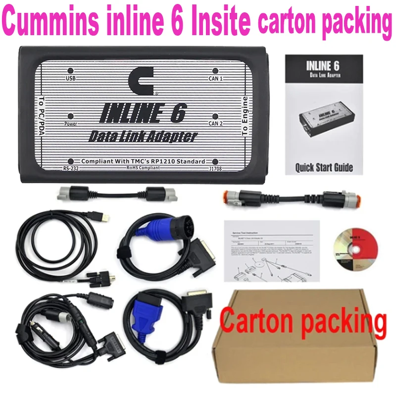 With full compliance to the Technology and Maintenance Council's RP1210 standard, the INLINE 6 will work with the latest Cummins INSITE, PowerSpec, and Calterm III software applications. It will also work with any other software applications that are fully compliant with the RP1210 standard (note that while some non-Cummins applications fully support RP1210, others do not, so you should test each application in question with the INLINE 6 adapter to make that determination).