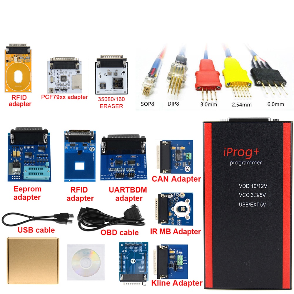 Programmateur V87 Iprog+ Pro version complète avec adaptateurs de sondes + adaptateur de carte SD IPROG Plus PCF79xx + adaptateur RDIF universel