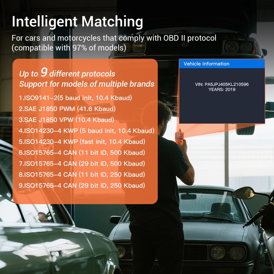 Caractéristiques du scanner OBD2 :