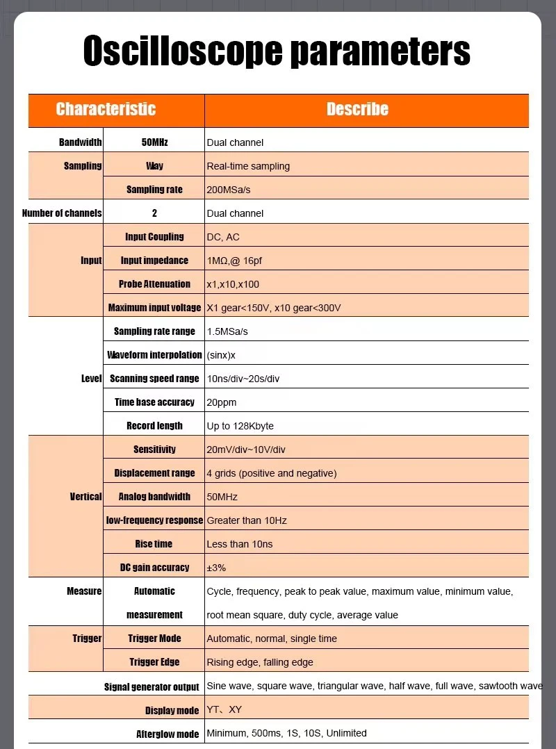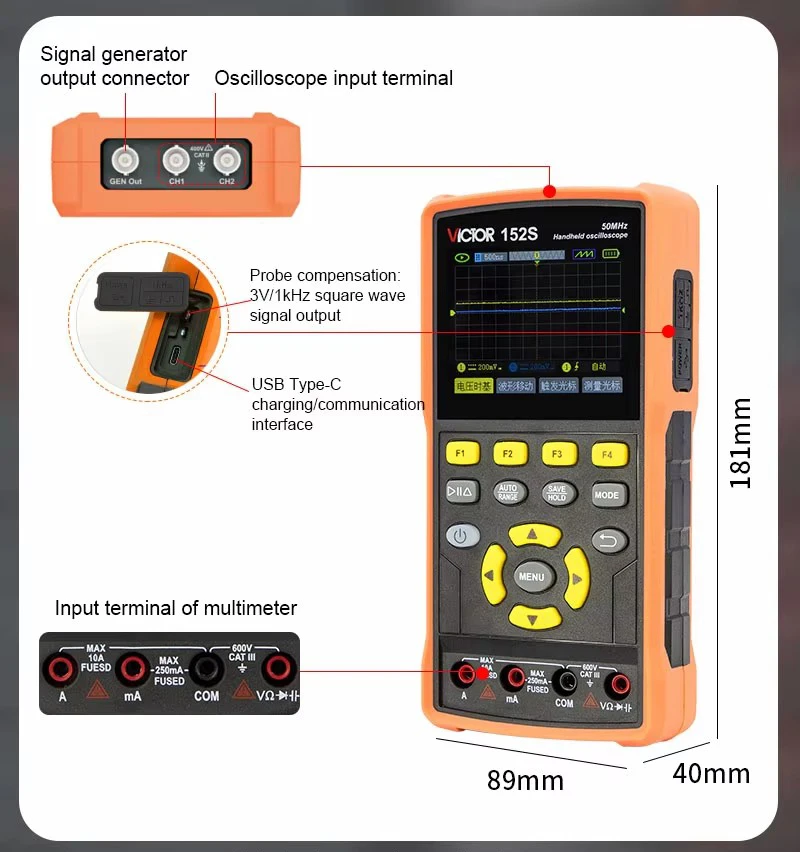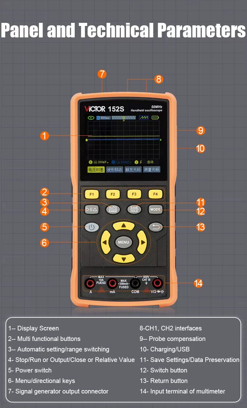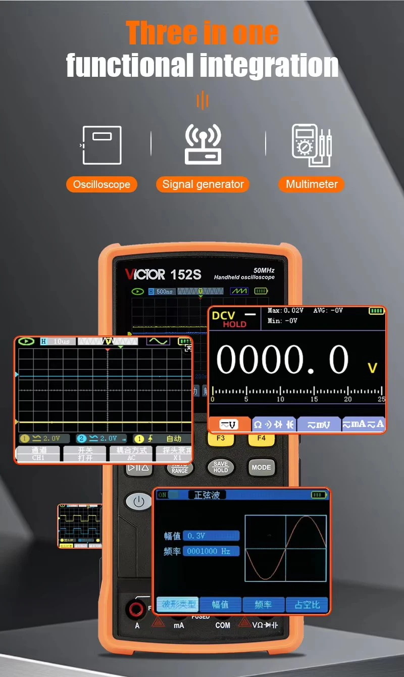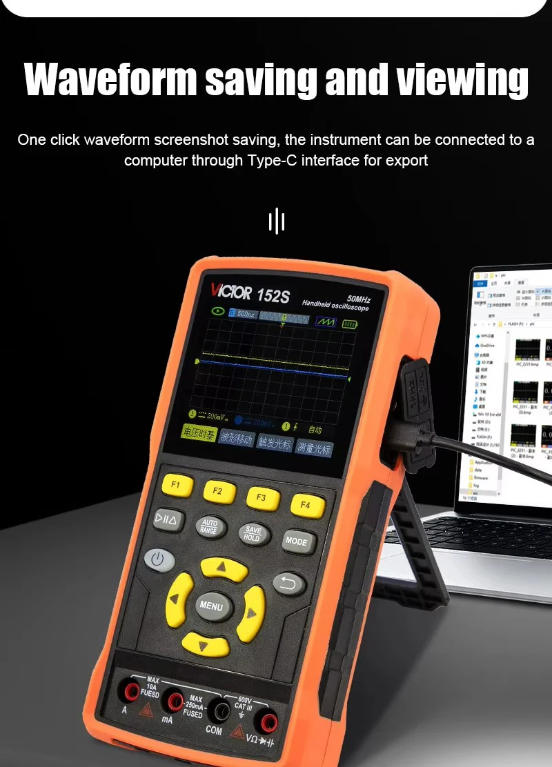 VICTOR 152S nouveau Oscilloscope portatif 2 canaux 50MHz 2200mAh Oscilloscope Rechargeable