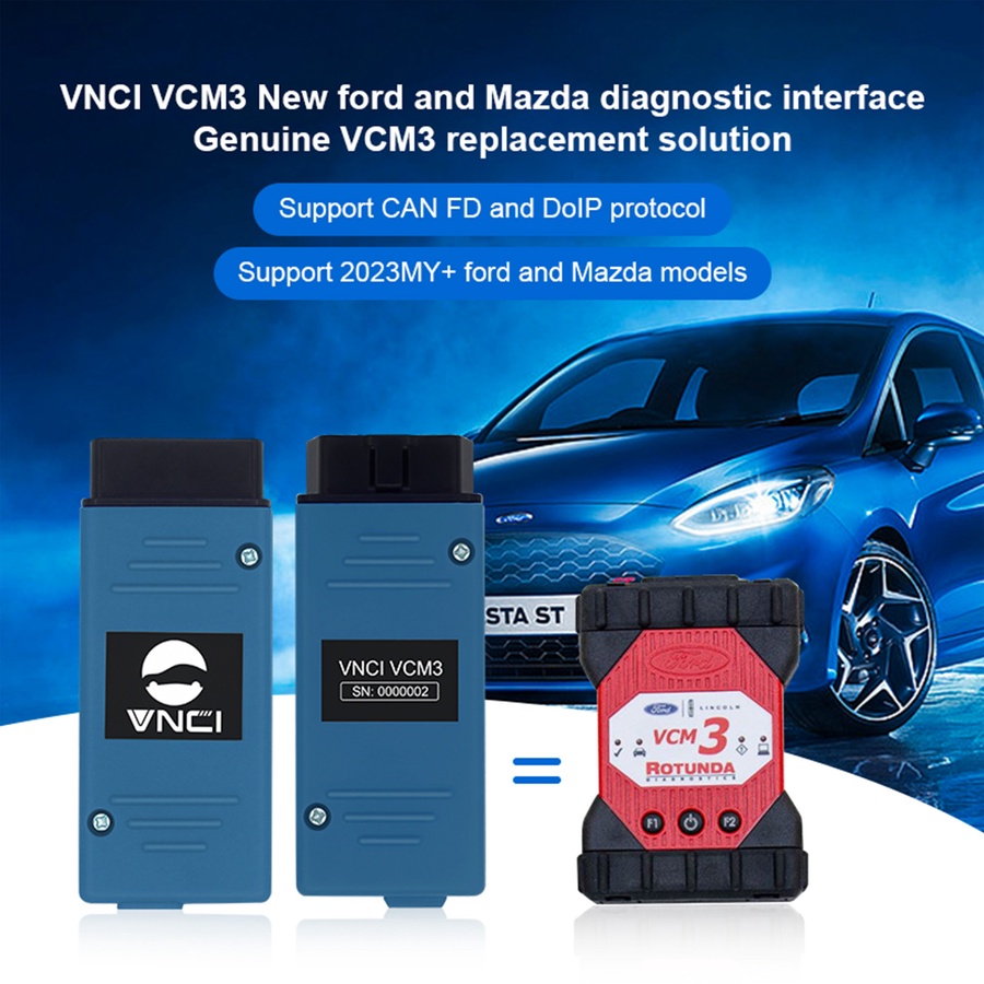 VNCI VCM3 diagnostic interface for new Ford Mazda is compatible with Ford Mazda original software driver. No third-party software is required. It is plug-and-play and can completely replace the original VCM3 diagnostic tool. Supports CAN FD and DoIP communication, can support diagnostics, programming, immobilizer matching and other functions of new Ford models and Ford pickup trucks, and supports three network connection methods: USB connection, WIFI direct connection and wireless LAN connection.