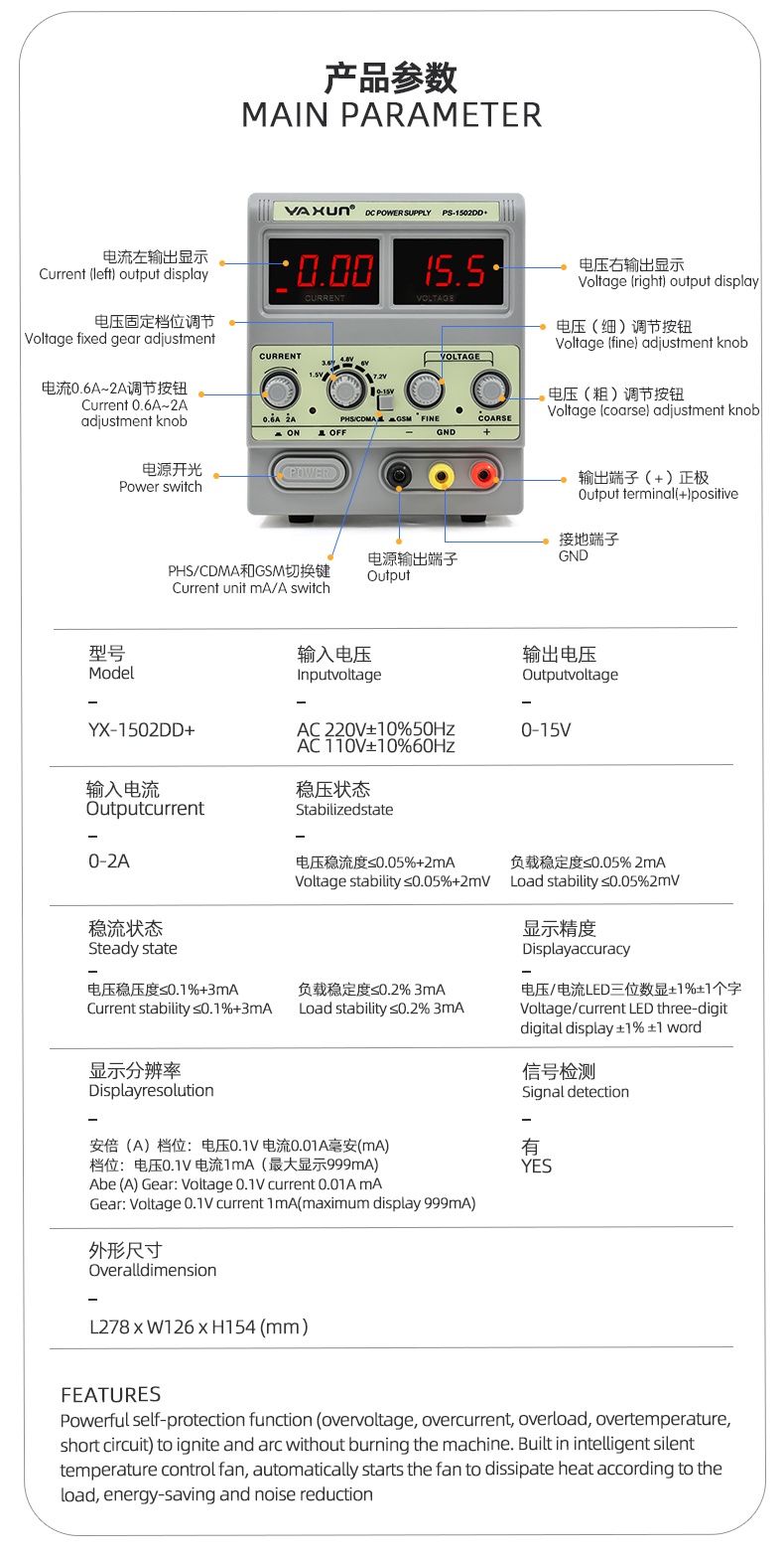 +YAXUN YX-1502DD 15V