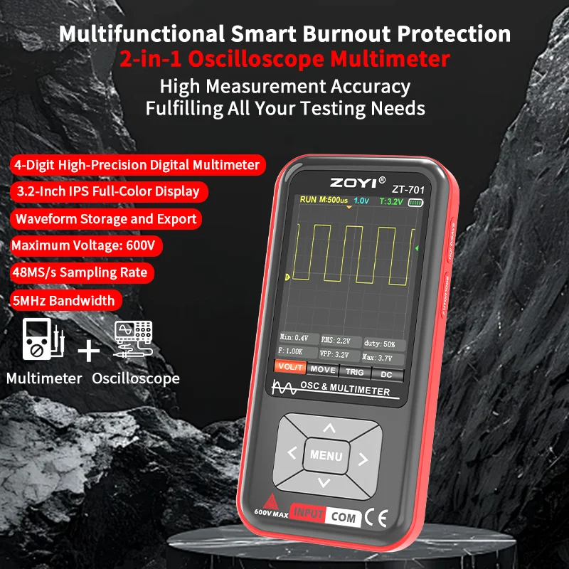 ZOYI – multimètre Oscilloscope numérique 2 en 1, ZT701, 48Msps, 5MHz, 9999 points, multimètre Portable, outil de Test électrique multifonctionnel