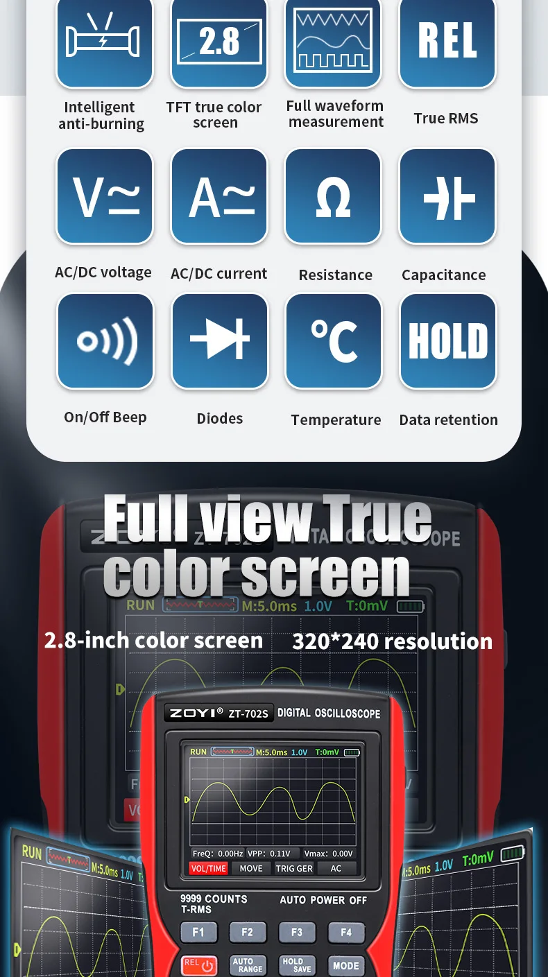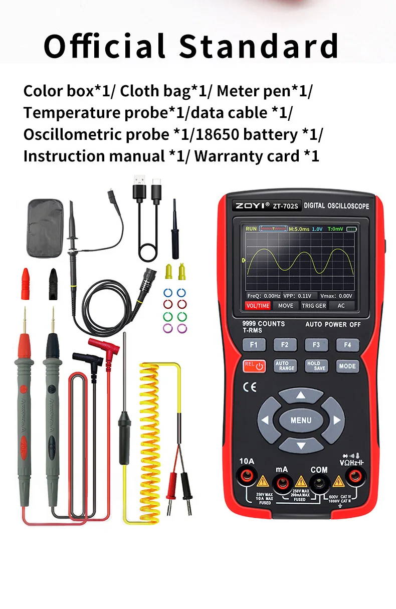 2.MODE key switches the mode of digital multimeter and oscilloscope
