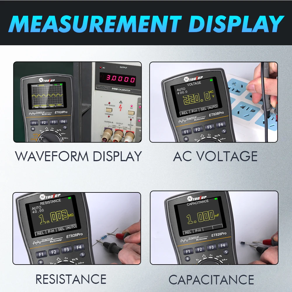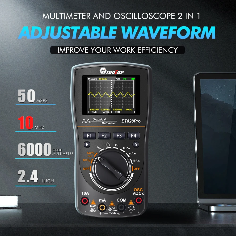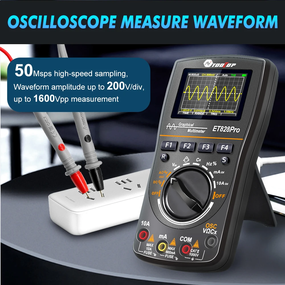 TOOLTOP ET828Pro 10MHz 50Mps/s Oscilloscope portatif 6000 points True RMS multimètre voltmètre ampèremètre Oscilloscope automobile