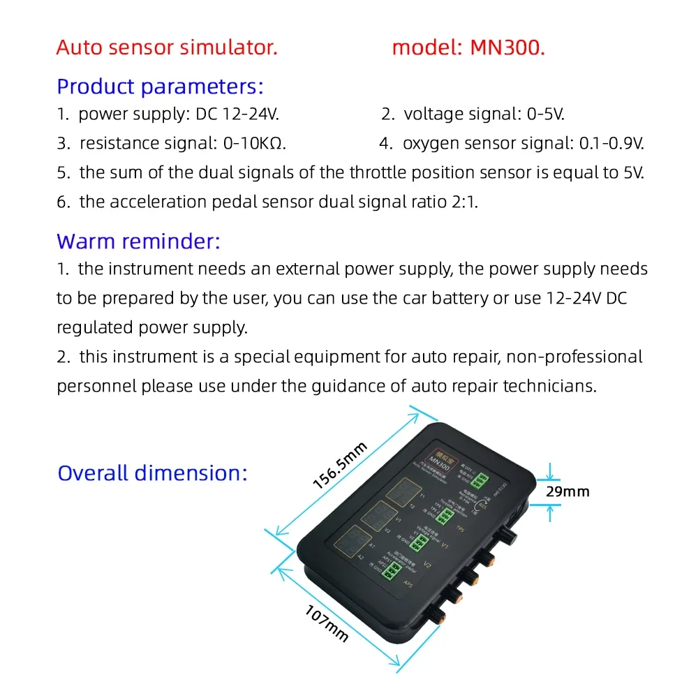 Nouvel arrivage! Simulateur de capteur automatique MN300, testeur automobile, rail de voiture, oxygène, pression d'huile, capteur de débit, générateur de signal