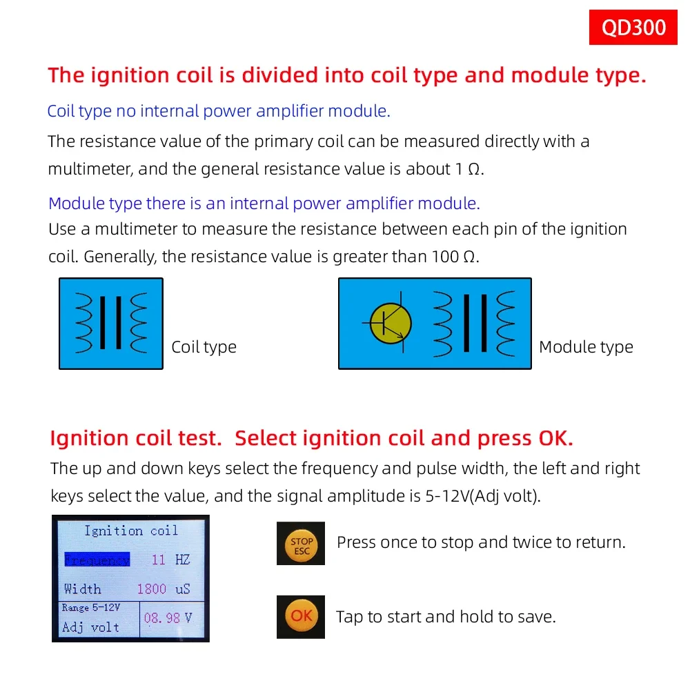 1. bobine d'allumage d'essai d'entraînement: y compris l'allumage indépendant, type de bobine, type de module.