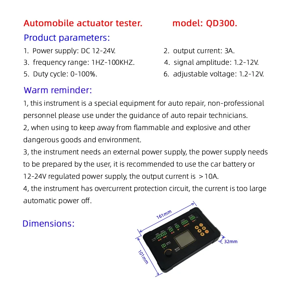 7. Plage de tension d'alimentation: 12V-24V, avec protection de connexion inverse, protection contre les surintensités.